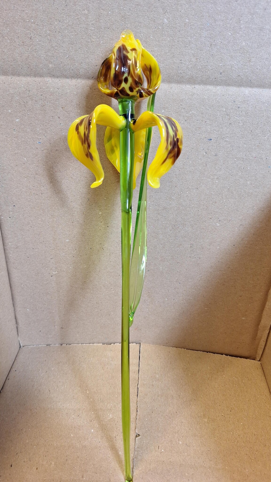 Bent u een liefhebber van glazen voorwerpen?, dan zult U deze tijger gele iris ook wel mooi vinden.