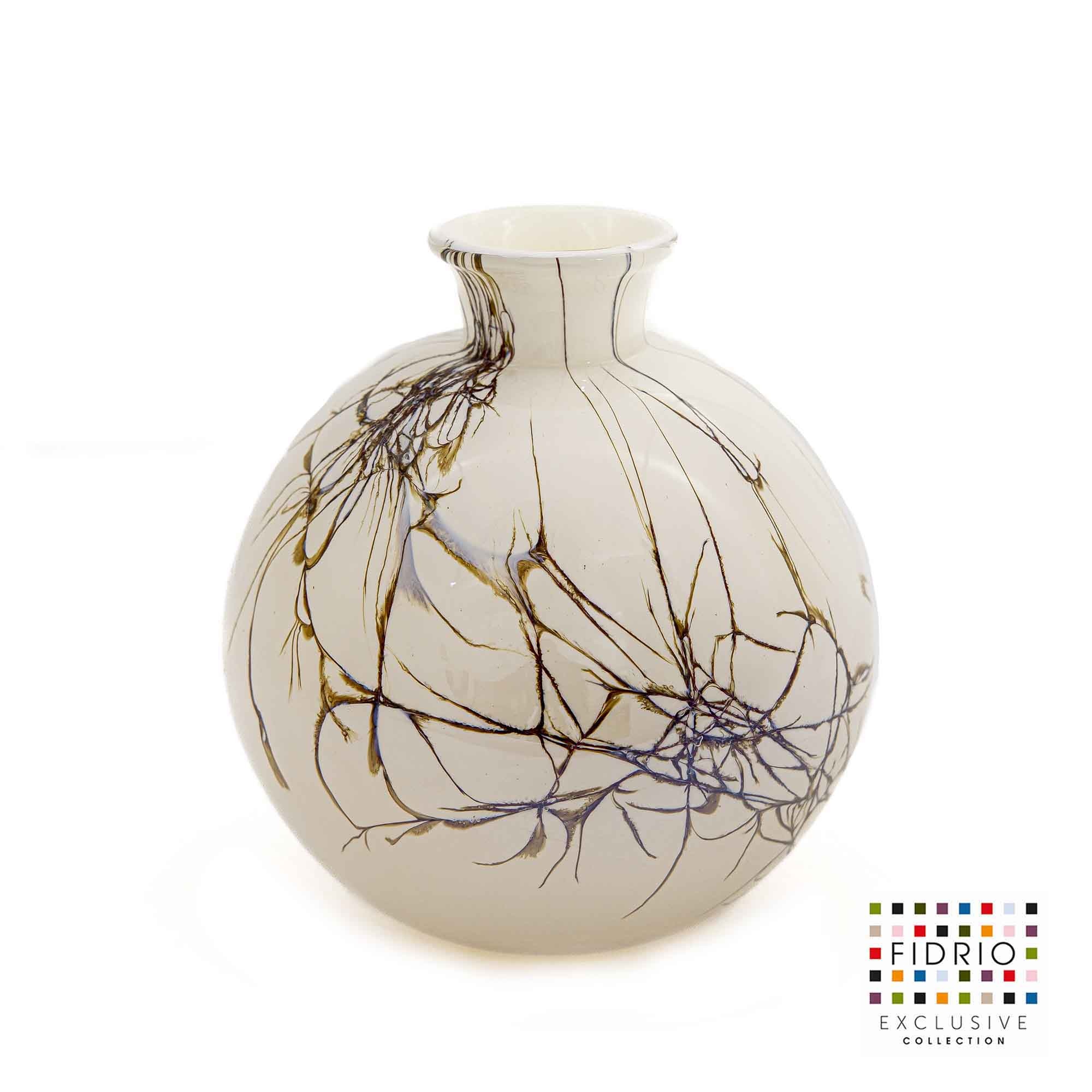 Alle glasvazen van Fidrio zijn handmatig gemaakt op de traditionele, ambachtelijke wijze. Het bewerkbare super hete glas wordt in een houten mal geblazen, waarbij de mal als basisvorm dient, maar de kleurschakeringen en daarmee ook de uitstraling zullen bij elke vaas anders zijn. De opgegeven maten zijn altijd Circa maten.