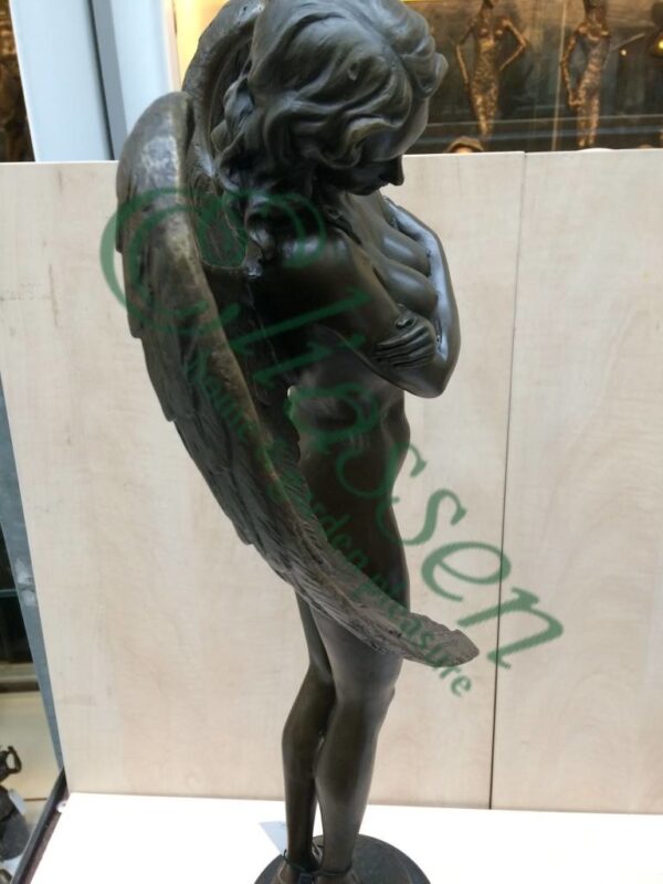 Mooi groot beeld van een vrouwenfiguur met vleugels, op marmeren voet, van 100% hoogwaardig brons met een minimale kopergehalte van 75% waardoor een zeer lange levensduur gegarandeerd is en geen lelijke vlekken ontstaan. Een prachtig en duurzaam decoratie object voor huis , bedrijf of tuin, maar ook voor een prachti geschenk. Zoekt een een bronzen beeld voor een jubilaris? Wij kunnen ook tekstplaatjes voor op de sokkel voor u verzorgen.