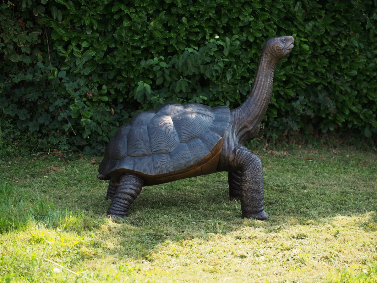 Bronzen beeld schildpad met hoofd hoog 155cm
