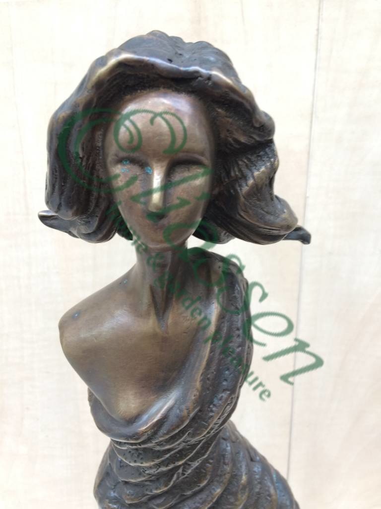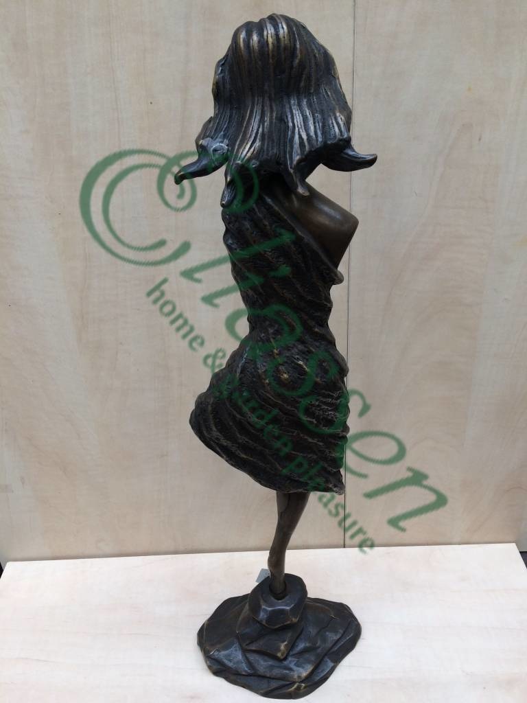 Mooi beeld van een moderne sjieke vrouw van hoogwaardig brons met een minimale kopergehalte van 75% waardoor een zeer lange levensduur gegarandeerd is.