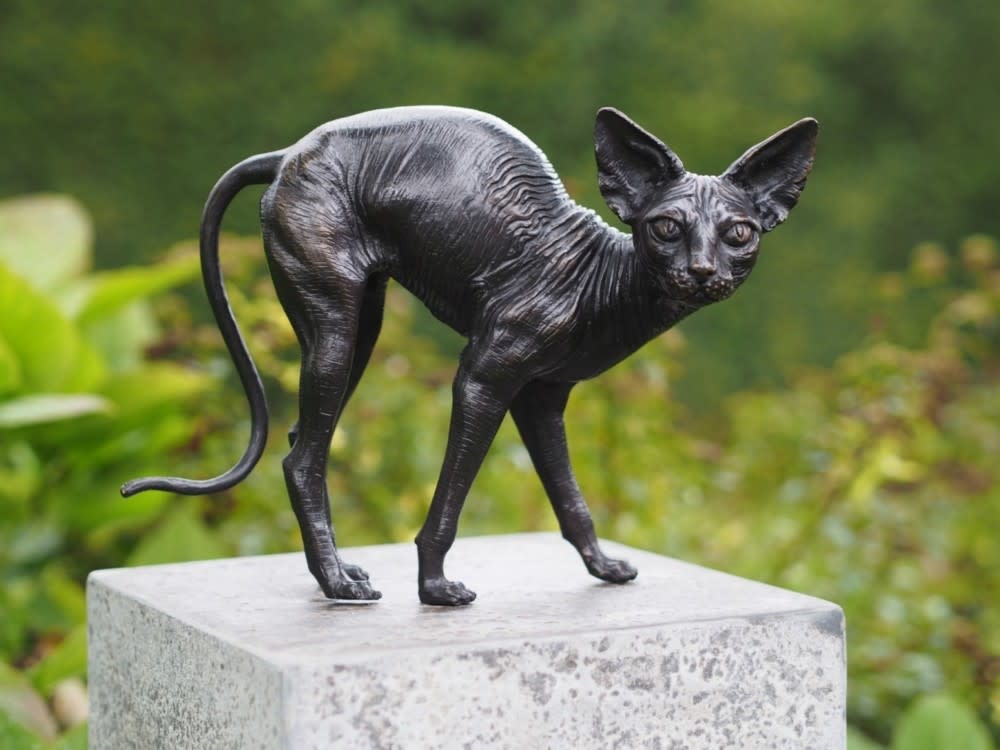 Dit bronzen model van een staande naaktkat met een hoge rug is een mooi stuk voor jezelf of om kado te doen bij een feest of jubileum.