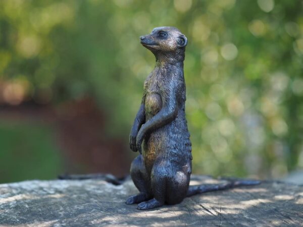 Mooi modern beeld van een stokstaartje. Gemaakt van 100% hoogwaardig brons met een minimale kopergehalte van 75% waardoor een zeer lange levensduur gegarandeerd is en geen lelijke vlekken ontstaan. Een prachtig en duurzaam decoratie object voor huis , bedrijf of tuin, maar ook voor een prachtig geschenk.