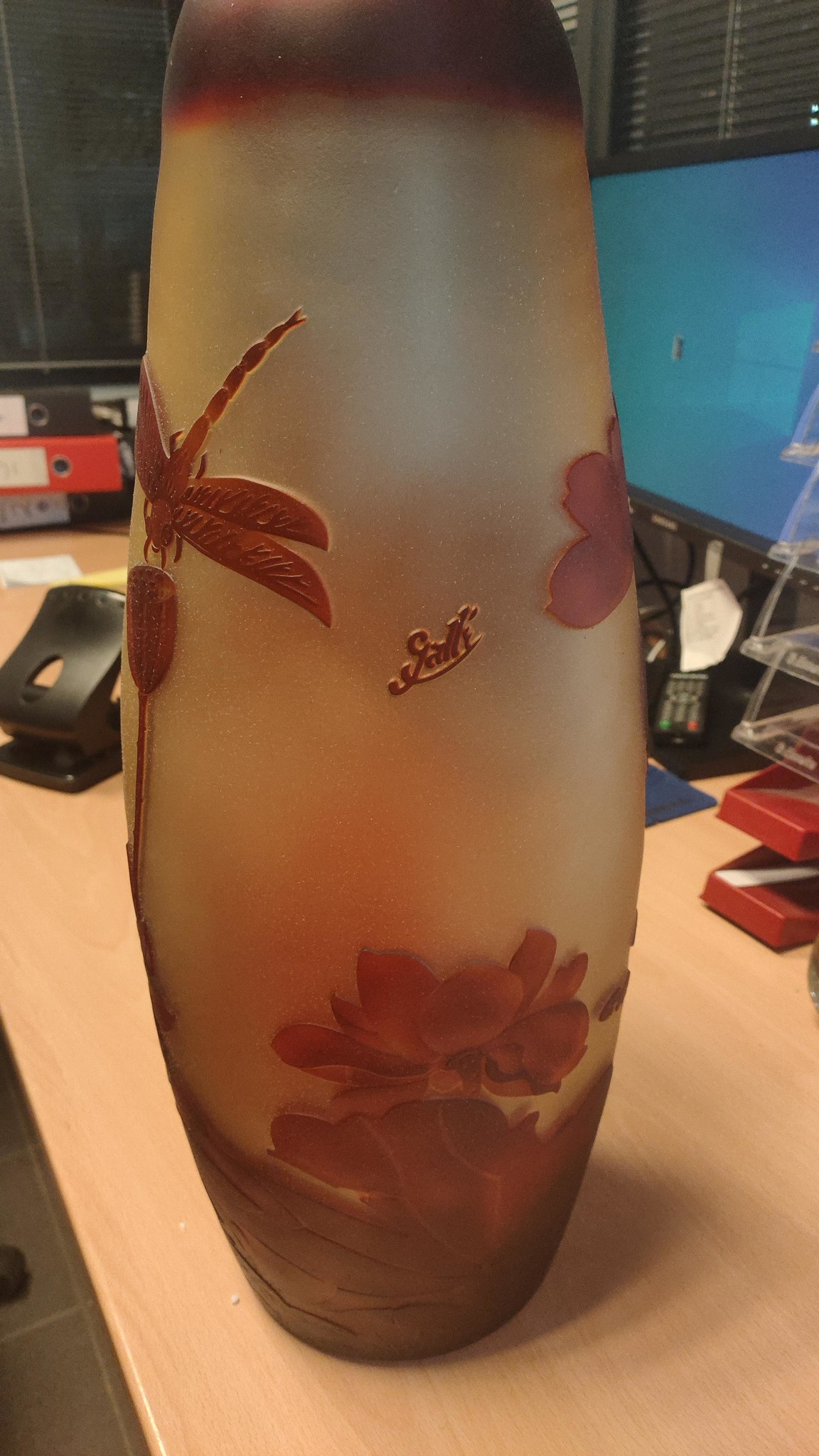 Cameo glasvaas van Emile Gallé Waterlelies 48cm