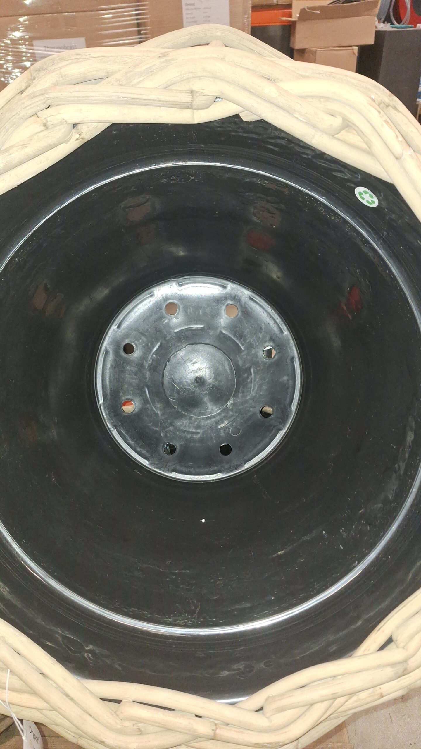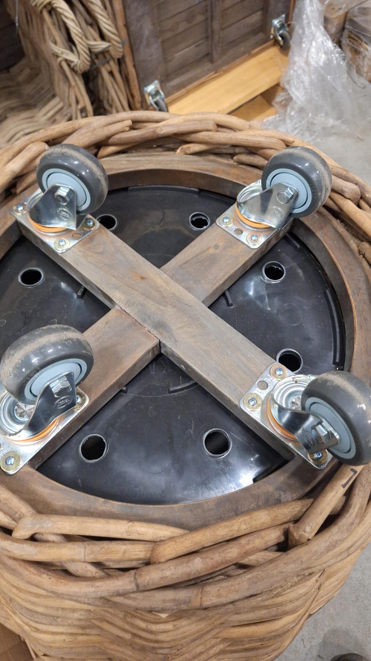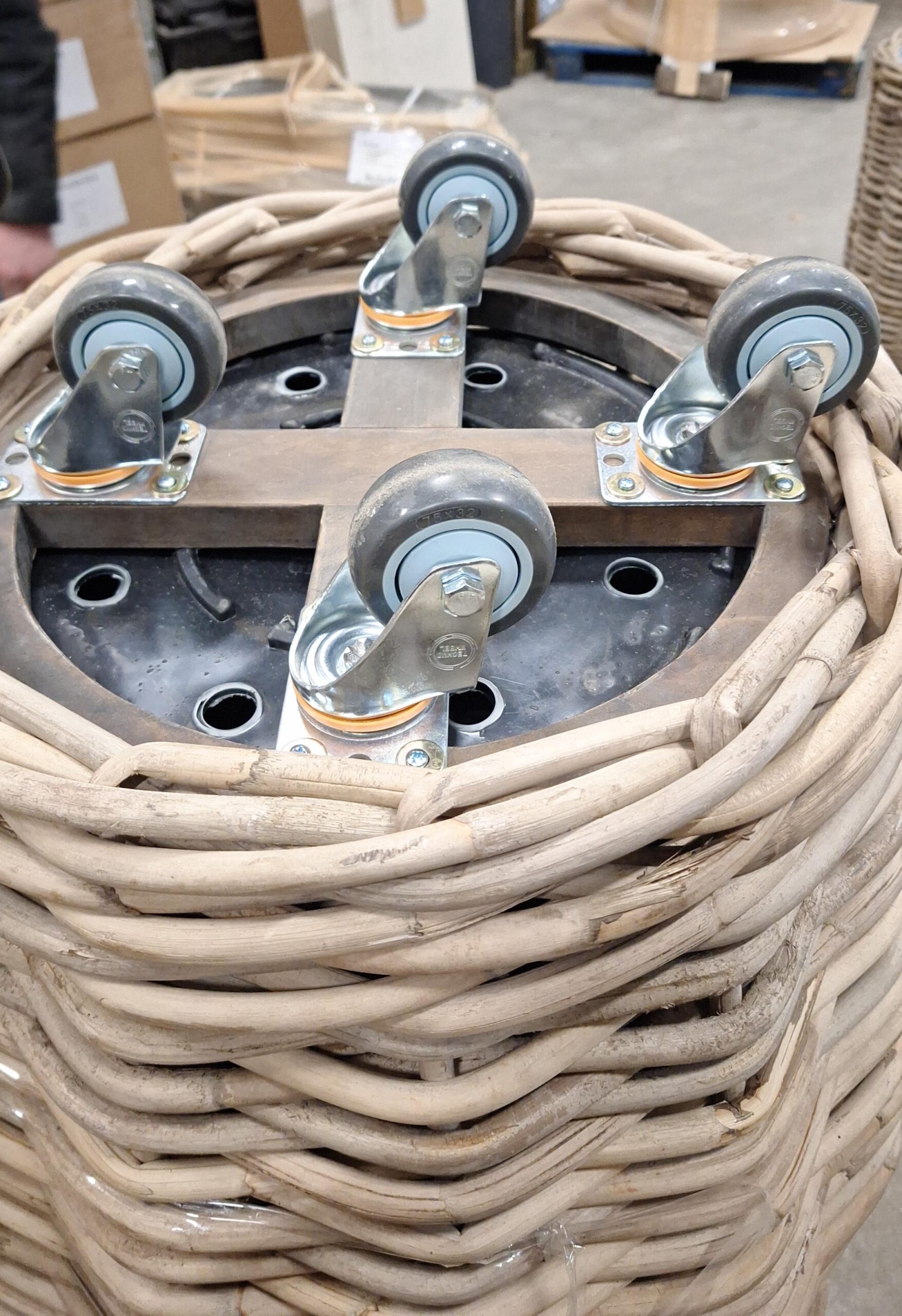 Drypot Sawah ronde hoge mand van dikke rotan 68cm met wielen