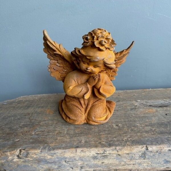 Zoekt u een nostalgisch beeld met een tijdloze landelijke uitstraling die nooit kapot zal gaan? Dan is dit beeld van gietijzer in de vorm van een engel met gevouwen handen die naar rechts kijkt wellicht iets voor u.