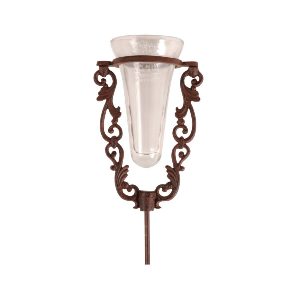 Met deze sierlijke gietijzeren regenmeter van het merk Esschert is de hoeveelheid regen in een bepaalde periode na te kijken of bij te houden. Dankzij de dikke, sierlijke glazen maatbeker van deze regenmeter kan regen opgevangen worden, en zo kan er eenvoudig nagekeken worden hoeveel er in een bepaalde periode is gevallen. De regenmeter kan door middel van de meegeleverde grondpin overal simpel in de grond worden gestoken.