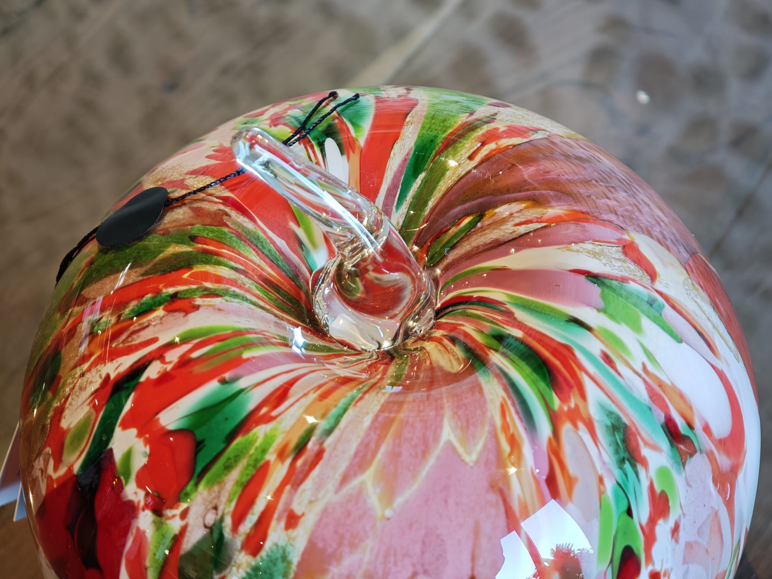 Doordat elk stuk met de hand wordt vervaardigd, bezit u met deze glazen appel altijd een uniek exemplaar met eigen karakteristieke patronen. Het object komt prachtig tot zijn recht op een dressoir, in de vensterbank of als stralend middelpunt op de eettafel. Wilt u de kwaliteit en de prachtige kleurschakeringen van dit kunstobject liever eerst zelf ervaren? U bent van harte welkom in onze showroom in Ammerzoden, waar wij een zeer uitgebreide collectie glaswerk en andere exclusieve woondecoraties voor u hebben uitgestald.