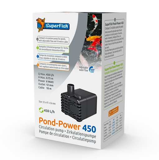 Door zijn extra kleine maat is deze fonteinpomp Pond-Power 450 overal eenvoudig te installeren. Deze circulatiepomp van Superfish is ideaal voor het opvoeren en circuleren van water in (kamer)fonteinen, en de kleinere waterornamenten. Deze pomp is voorzien van een water-regelaar