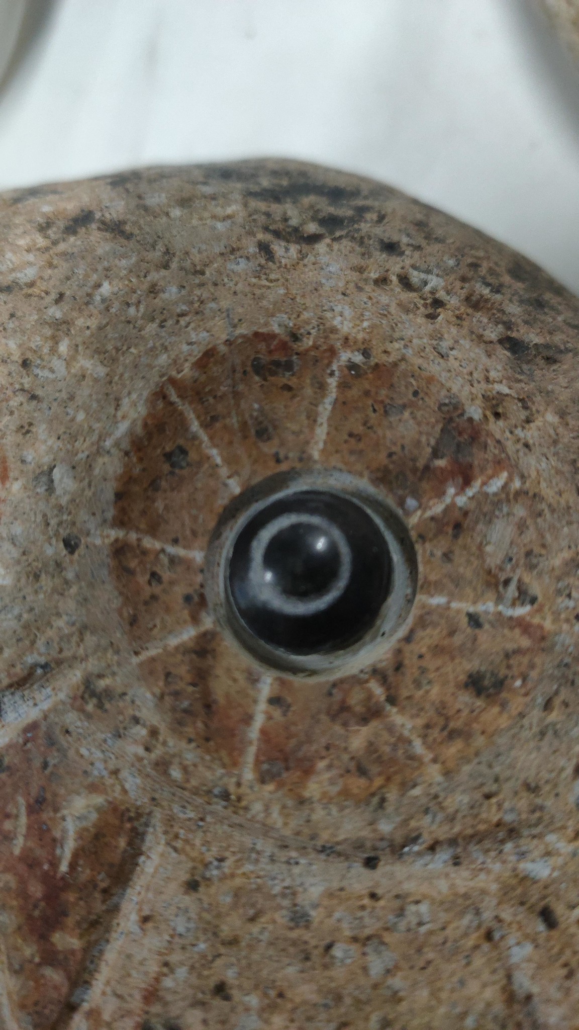 Prachtige stenen beeld van een hondje, met de hand gemaakt op een zwerfkei van 30cm. Eerst wordt de afbeelding op de kei getekend, waarna met een beiteltje de lijnen en sommige oppervlakken uitgehakt worden, zodat er diepte verschillen ontstaan. De hoogst liggende delen worden daarna zorgvuldig gepolijst. Een enorme klus, maar het resultaat mag er dan zijn voor deze handgemaakte gedenksteen hond.