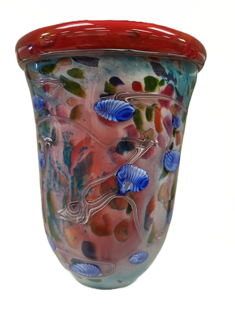 Dit prachtige, handmatig gemaakte glasobject in de vorm van een 32 cm hoge vaas met een rode rand is een pracht stuk decoratie voor uw huis of kantoor, maar ook natuurlijk leuk om cadeau te doen. Met de kwaliteit zit het wel goed van deze vaas. Deze is namelijk gemaakt door ambachtelijke glasblazers. Het is telkens weer een wonder hoe deze vaklieden van een hoopje glas weer een mooi sculptuur maken.
