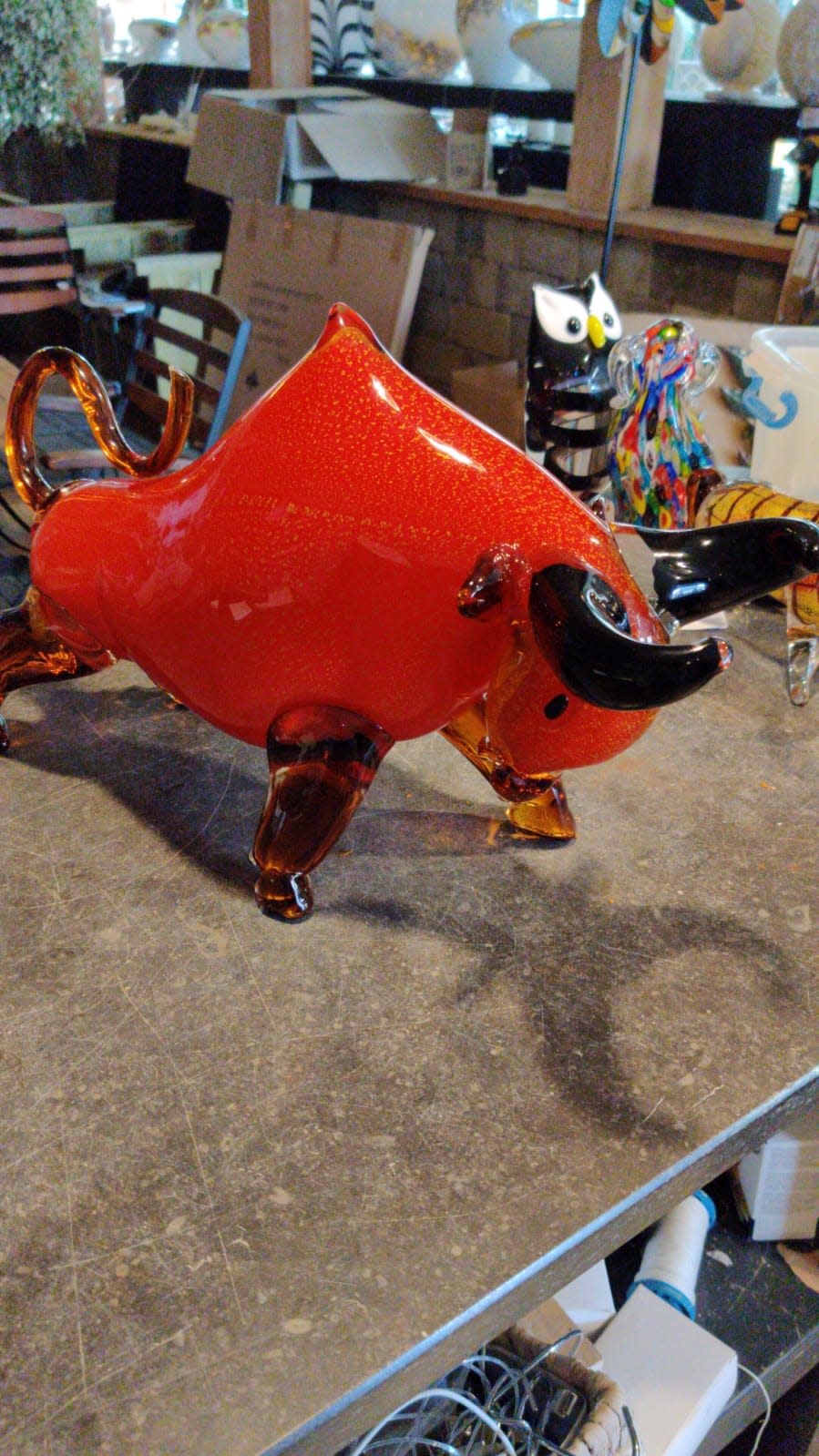 Prachtig groot glasbeeld van een rode stier.