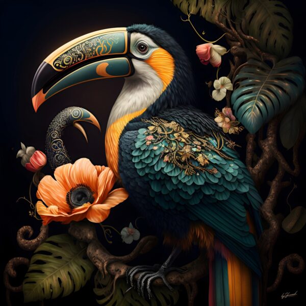 Glasschilderij 3d prachtige Toekan 120x120cm