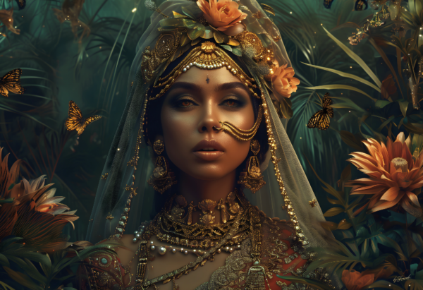 Glasschilderij Met goud versierde vrouw 160x110cm