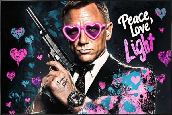 Glasschilderij met LED verlichting en lijst Geheim agent 120x80cm.