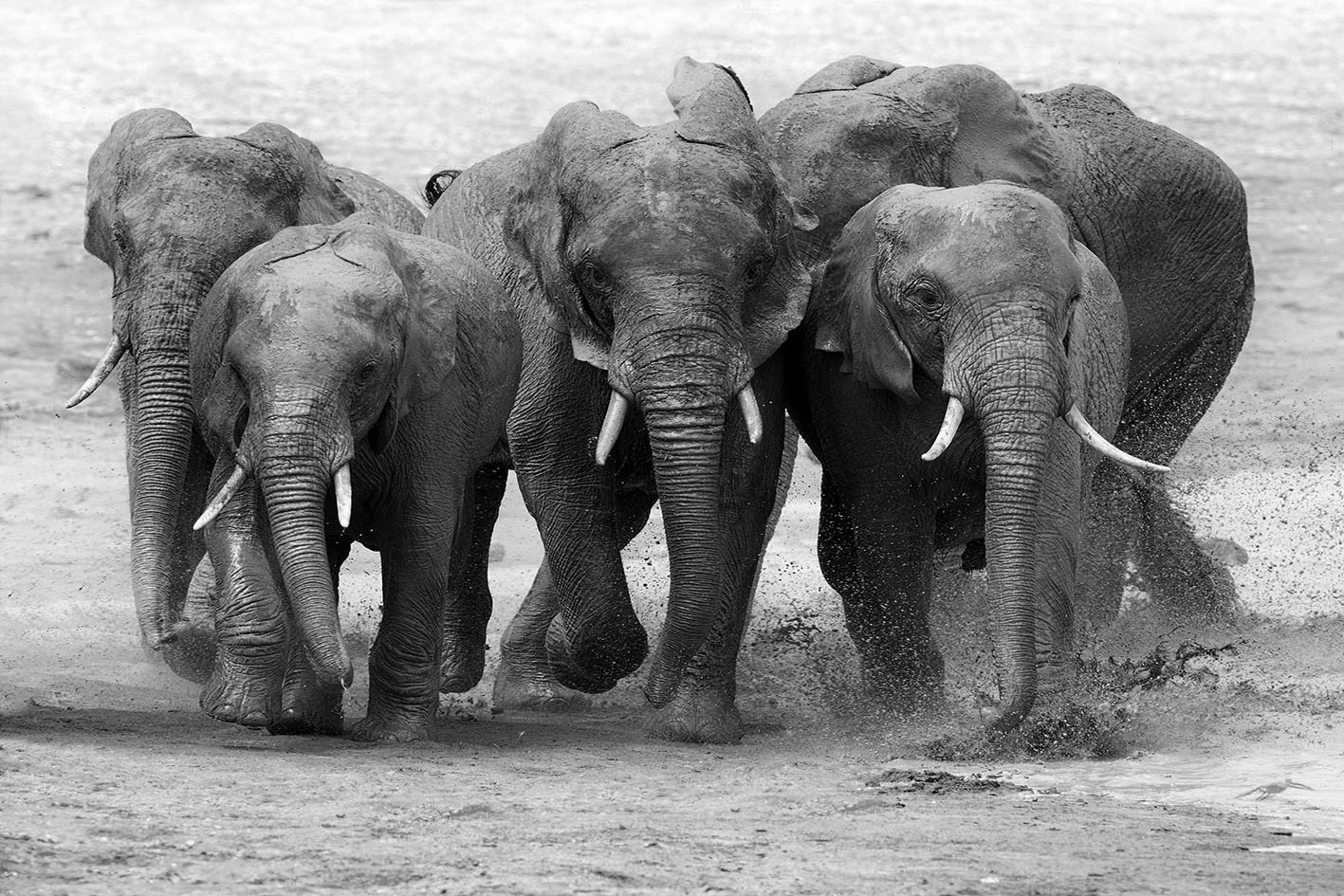 Prachtig in mooie strakke interieurs, maar natuurlijk ook smaakvol voor thuis of op uw kantoor. Deze zeer grote xxl glasplaat met een superscherpe afbeelding van een olifanten kudde die op weg is.