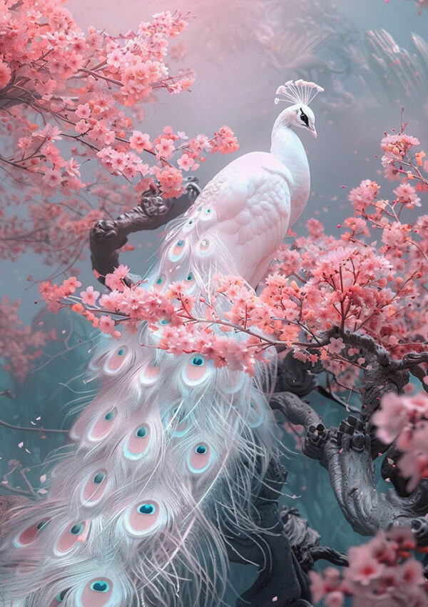 Glasschilderij Pauw in roze boom 80x120cm Mat effect