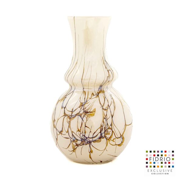 Alle glasvazen van Fidrio zijn handmatig gemaakt op de traditionele, ambachtelijke wijze. Het bewerkbare super hete glas wordt in een houten mal geblazen, waarbij de mal als basisvorm dient, maar de kleurschakeringen en daarmee ook de uitstraling zullen bij elke vaas anders zijn. De opgegeven maten zijn altijd Circa maten.
