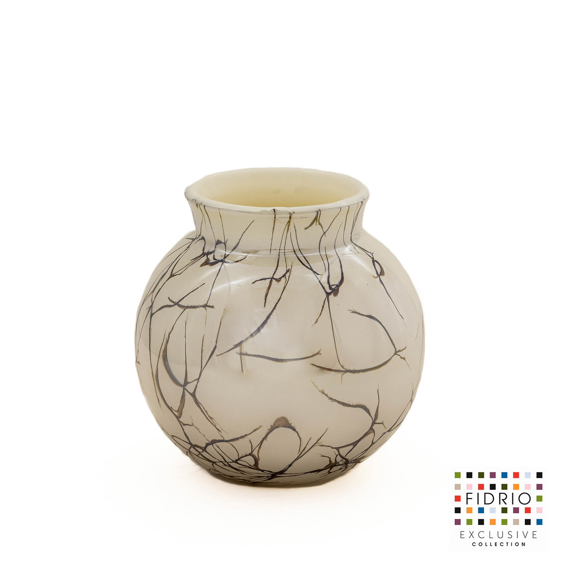 Alle glasvazen van Fidrio zijn handmatig gemaakt op de traditionele, ambachtelijke wijze. Het bewerkbare super hete glas wordt in een houten mal geblazen, waarbij de mal als basisvorm dient, maar de kleurschakeringen en daarmee ook de uitstraling zullen bij elke vaas anders zijn. De opgegeven maten zijn altijd Circa maten.