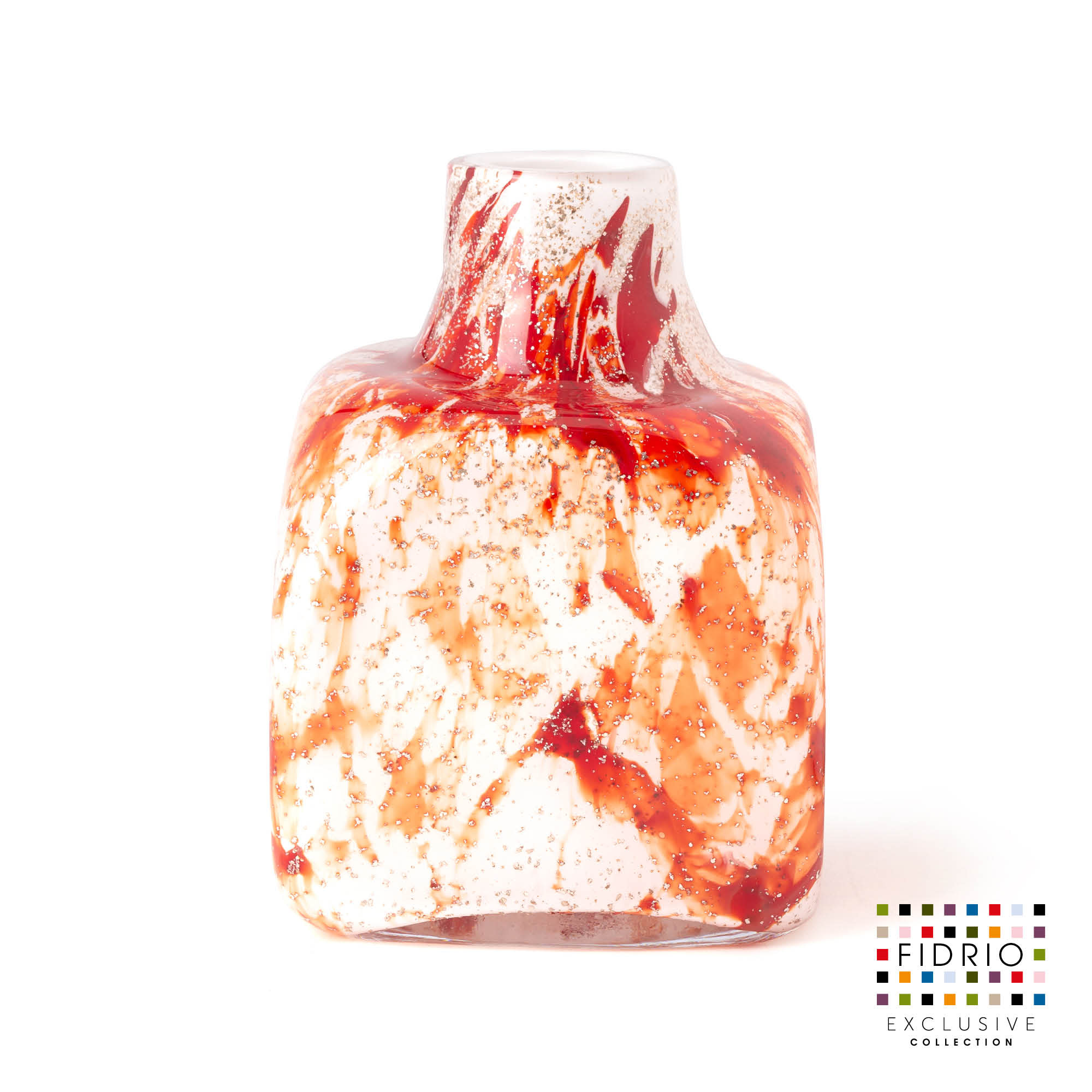 Alle glasvazen van Fidrio zijn handmatig gemaakt op de traditionele, ambachtelijke wijze. Het bewerkbare super hete glas wordt in een houten mal geblazen, waarbij de mal als basisvorm dient, maar de kleurschakeringen en daarmee ook de uitstraling zullen bij elke vaas anders zijn. De opgegeven maten zijn altijd Circa maten.
