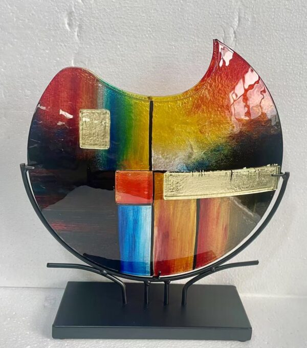 Dit model glazen vaas op metalen houder is een geschikt model als u op zoek bent naar een spetterende en kleurrijke toevoeging in uw huis met moderne stijl en klasse. Ook voor op kantoor zorgt dit product voor een échte eyecatcher omdat deze qua vorm uniek is in zijn soort en kleuren in New Age stijl.