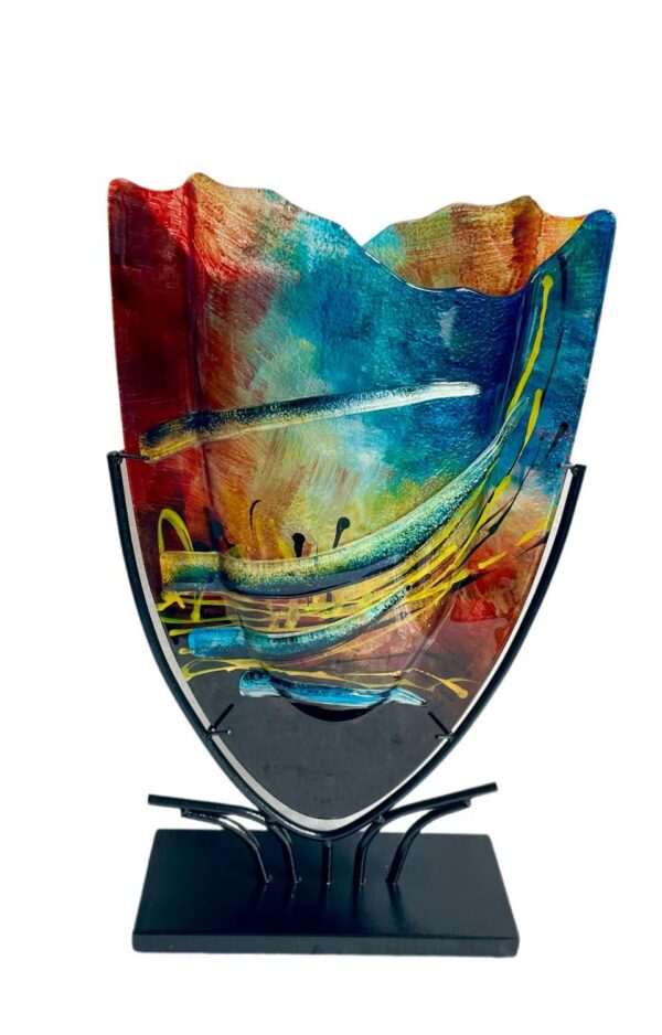 Dit model glasvaas is een geschikt model als u op zoek bent naar een spetterende en kleurrijke toevoeging in uw huis met moderne stijl en klasse. Ook voor op kantoor zorgt dit product voor een échte eyecatcher omdat deze schaal uniek is in zijn soort en kleuren in Giulia stijl.