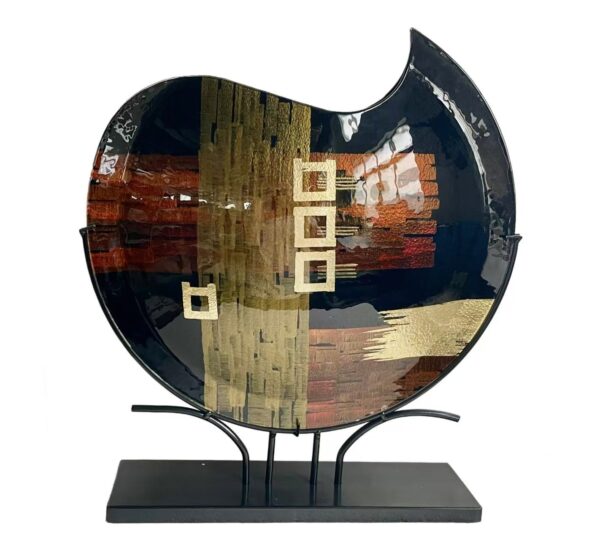 Giulia Glasvaas (50x48x11cm). Mondgeblazen en handgeschilderd. Abstracte, donkere hoogglans eyecatcher voor moderne interieurs.