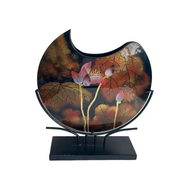 Dit prachtige model uit de serie Giulia glaswerk met vazen en schalen is in donkere kleuren en met subtiel weergegeven bloemen een ware aankleding voor uw huis.