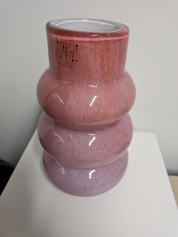 Alle glasvazen van Fidrio zijn handmatig gemaakt op de traditionele, ambachtelijke wijze. Het bewerkbare super hete glas wordt in een houten mal geblazen, waarbij de mal als basisvorm dient, maar de kleurschakeringen en daarmee ook de uitstraling zullen bij elke vaas anders zijn. De opgegeven maten zijn altijd Circa maten.
