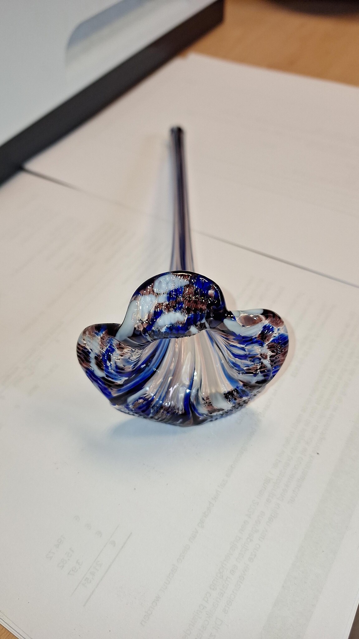 Deze unieke glazen blauw-witte lelie bloem is een pracht stuk decoratie voor uw huis of kantoor. Met de kwaliteit zit het wel goed van deze lelie, deze is namelijk gemaakt door een ambachtelijke glasblazer uit het bekende Bohemen, de Europese glas-streek bij uitstek. Is in vaas mooi maar wordt ook vaak liggend neegelegd, ook op een graf gelegd.