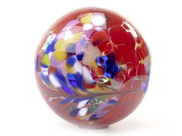 Glazen bol op tuinsteker rood 20cm.