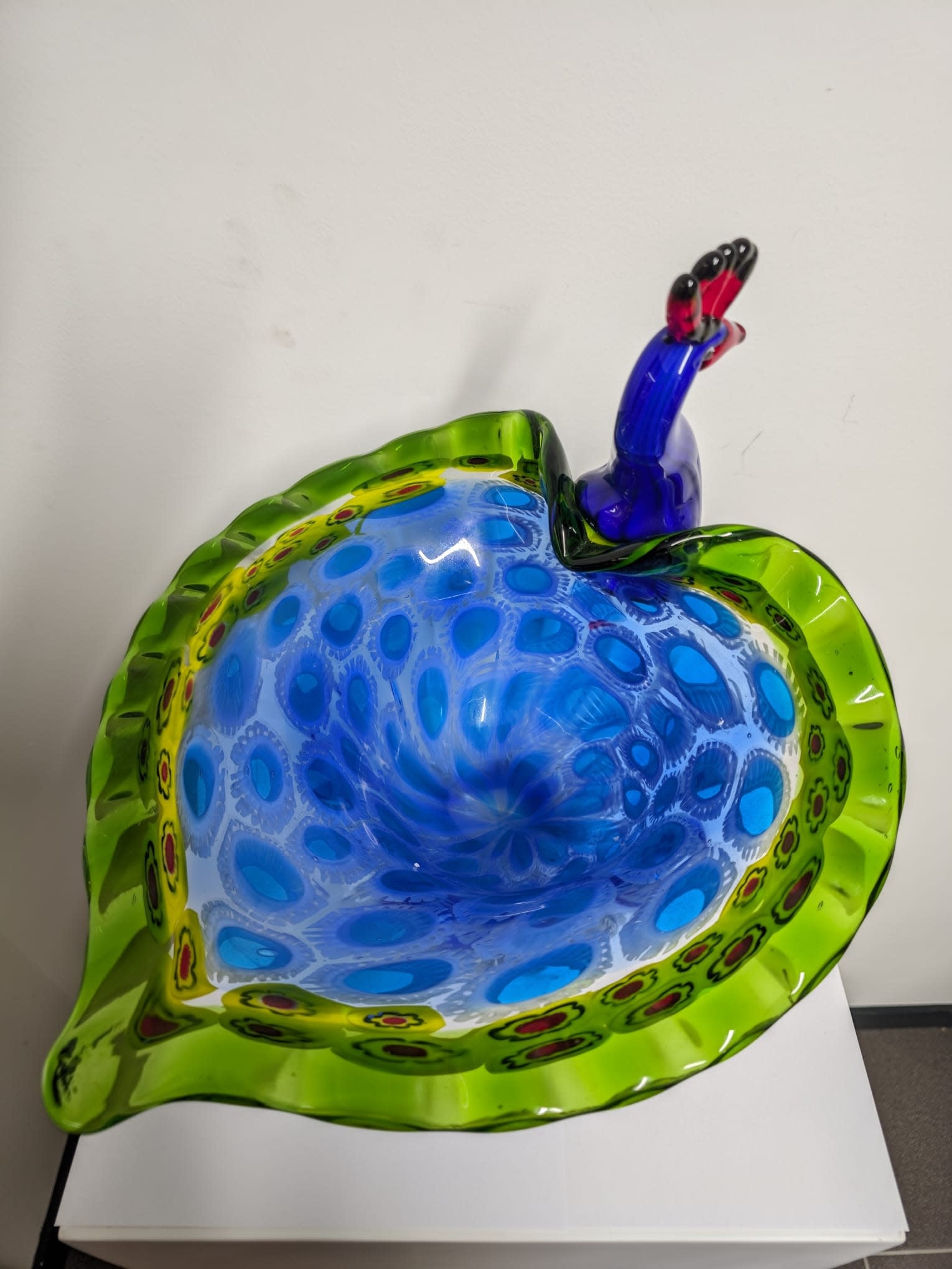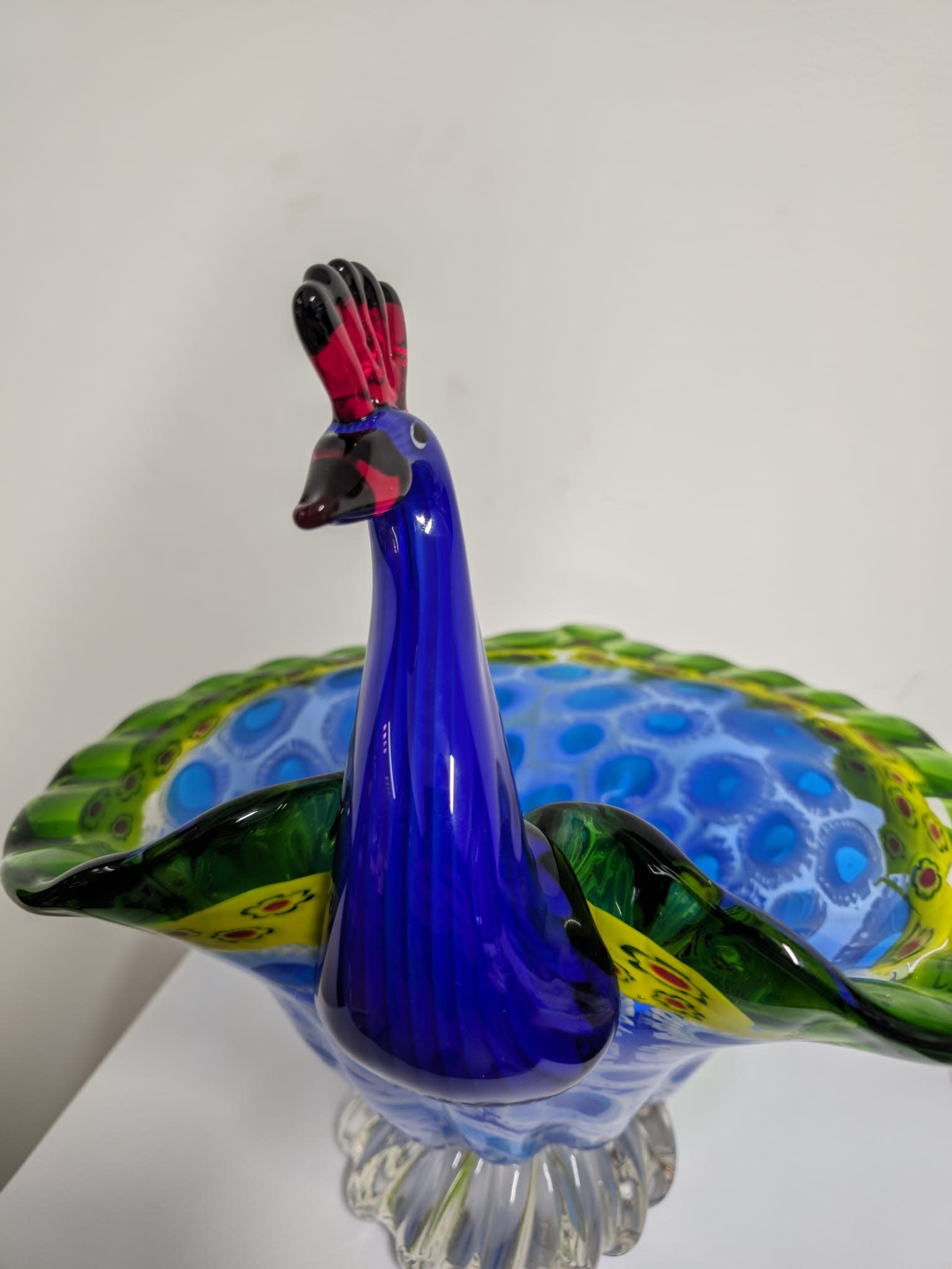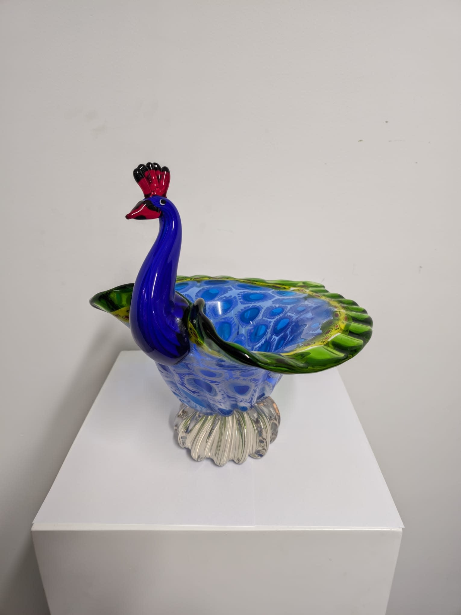Een leuke toevoeging aan een glazen schaal is dit beeld van een pronkende pauw gemaakt van glas op een ambachtelijke wijze. Dit beeld is handgemaakt en is een prachtige toevoeging voor in uw interieur of om kado te doen.