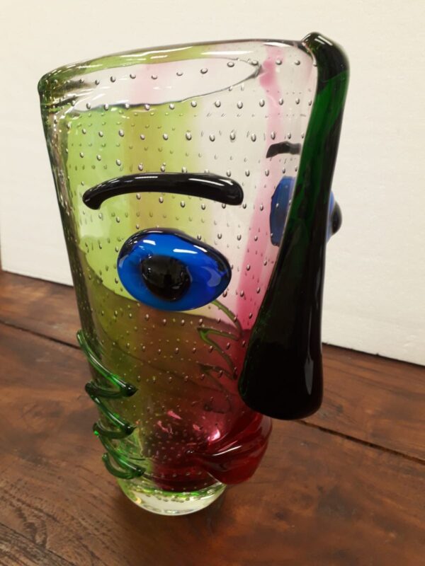 Deze veelgekleurde siervaas is gemaakt op de ouderwetse ambachtelijke glasblaas- techniek. Bijzonder is hoe op de traditionele manier uit verschillende kleuren glas dit prachtige model bloemenvaas is verkregen.
