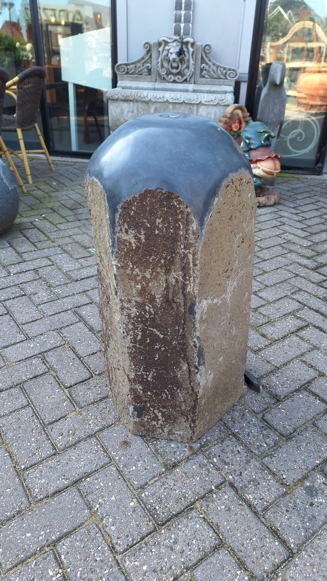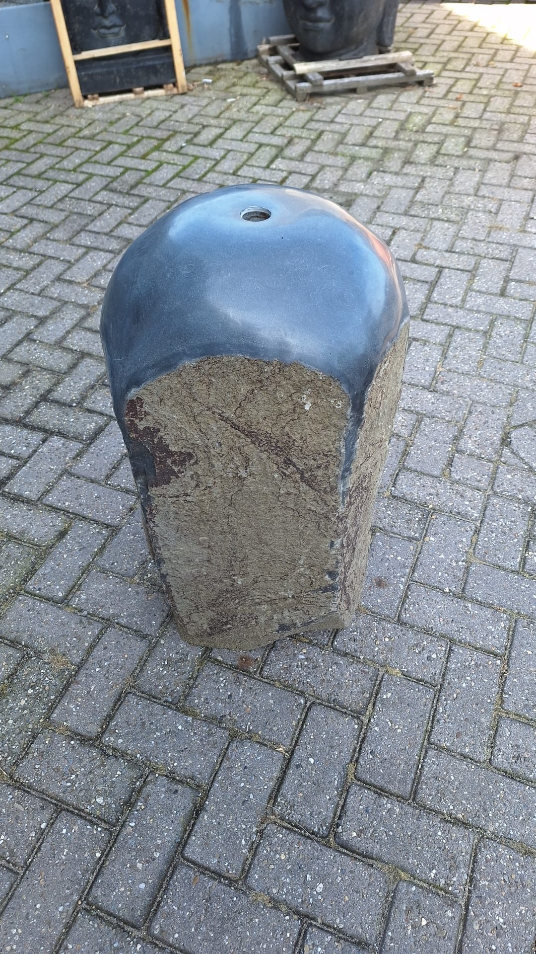 Prachtige grote en dikke waterzuil, zijn alleen bij ons te koop. Gemaakt van basaltsteen met een speelse, maar wel natuurlijke vorm, aan bovenzijde bol gemaakt gepolijst. De vorm van deze zuilen zullen altijd afwijken van de foto, omdat deze zuilen zo uit de natuur gehaald wordt en deze natuurlijke vorm niet bewerkt wordt. De breedte van deze basaltzuilen variëren tussen de 35 en 45cm en de hoogte is 80cm.