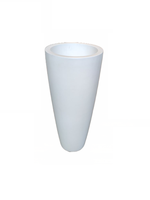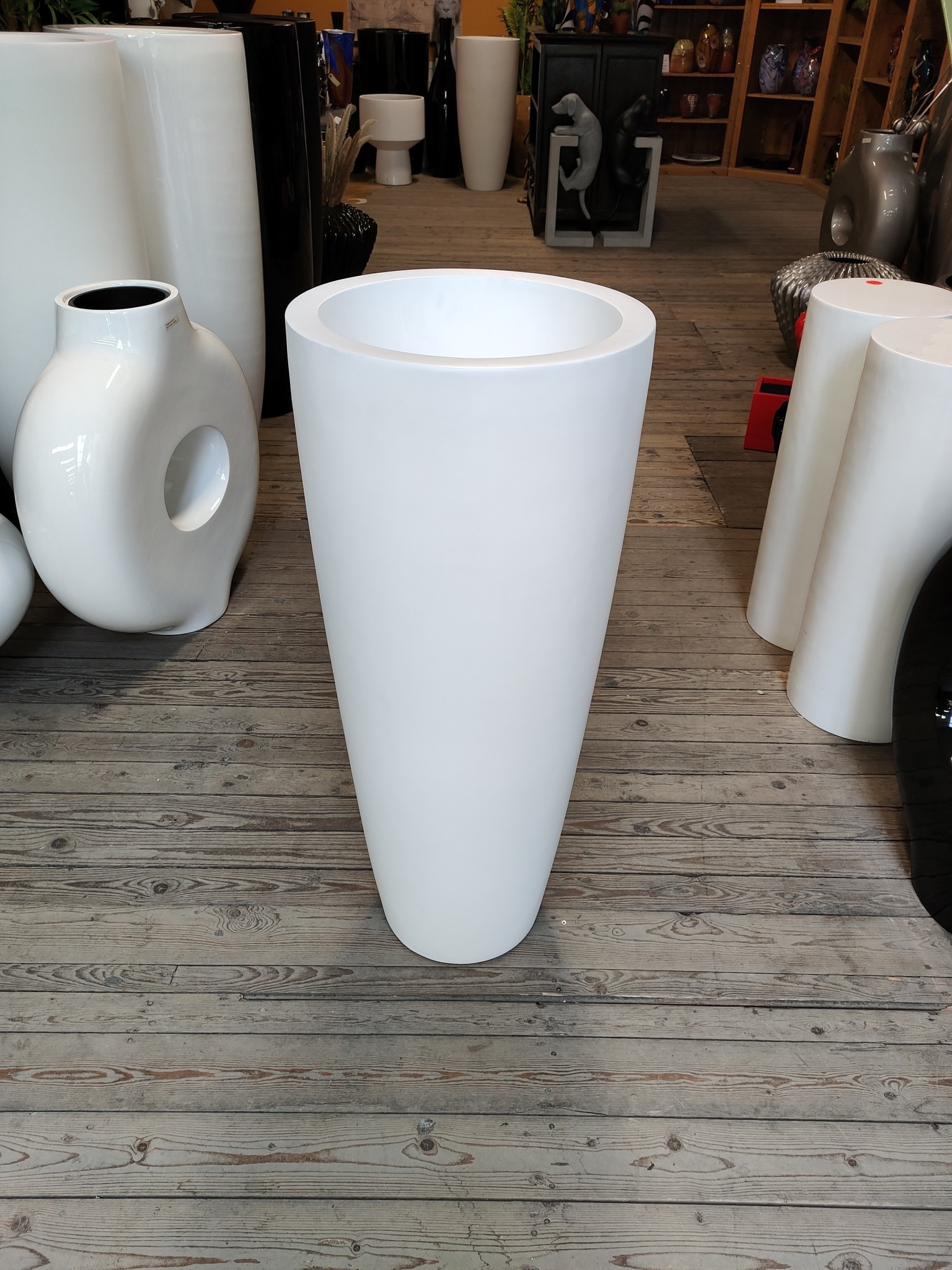 Gemaakt van het ijzersterke fiberstone, prachtig afgewerkt met een supersterke matte lak van super kwaliteit. Fiberstone is gemaakt van gemalen natuursteen, gemengd met polyester-epoxyhars, en versterkt met glasvezel matten. Deze vaas is geschikt voor binnen en buiten.