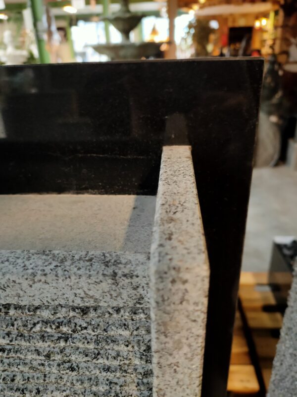 - Materiaal: graniet gepolijst/ingezaagd, zwart/grijs