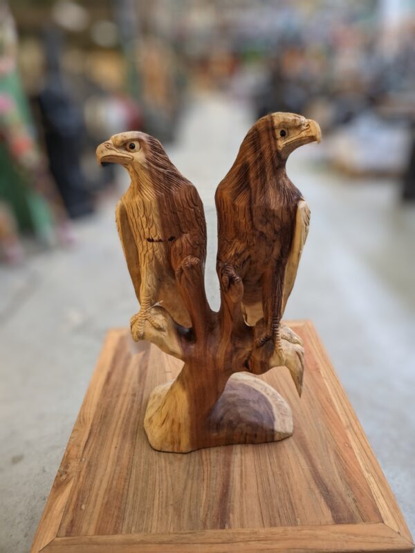 Prachtig stukje vakwerk, deze stam met adelaars er op, handmatig gemaakt van massief Suar hout.