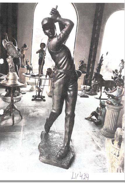 Prachtig stukje vakwerk, deze golfer met zijn golfstick in de lucht, handmatig gemaakt van massief Suar hout.