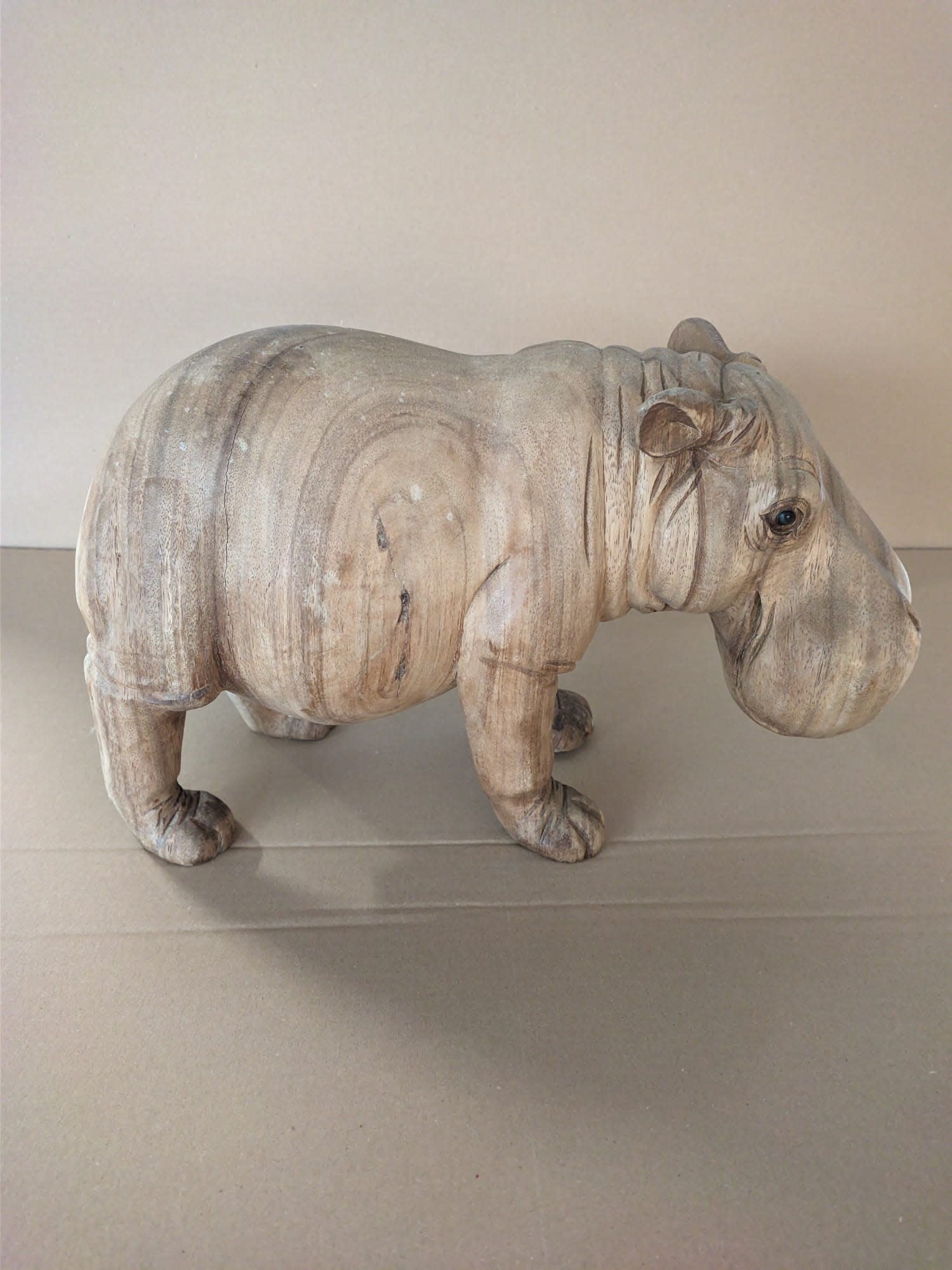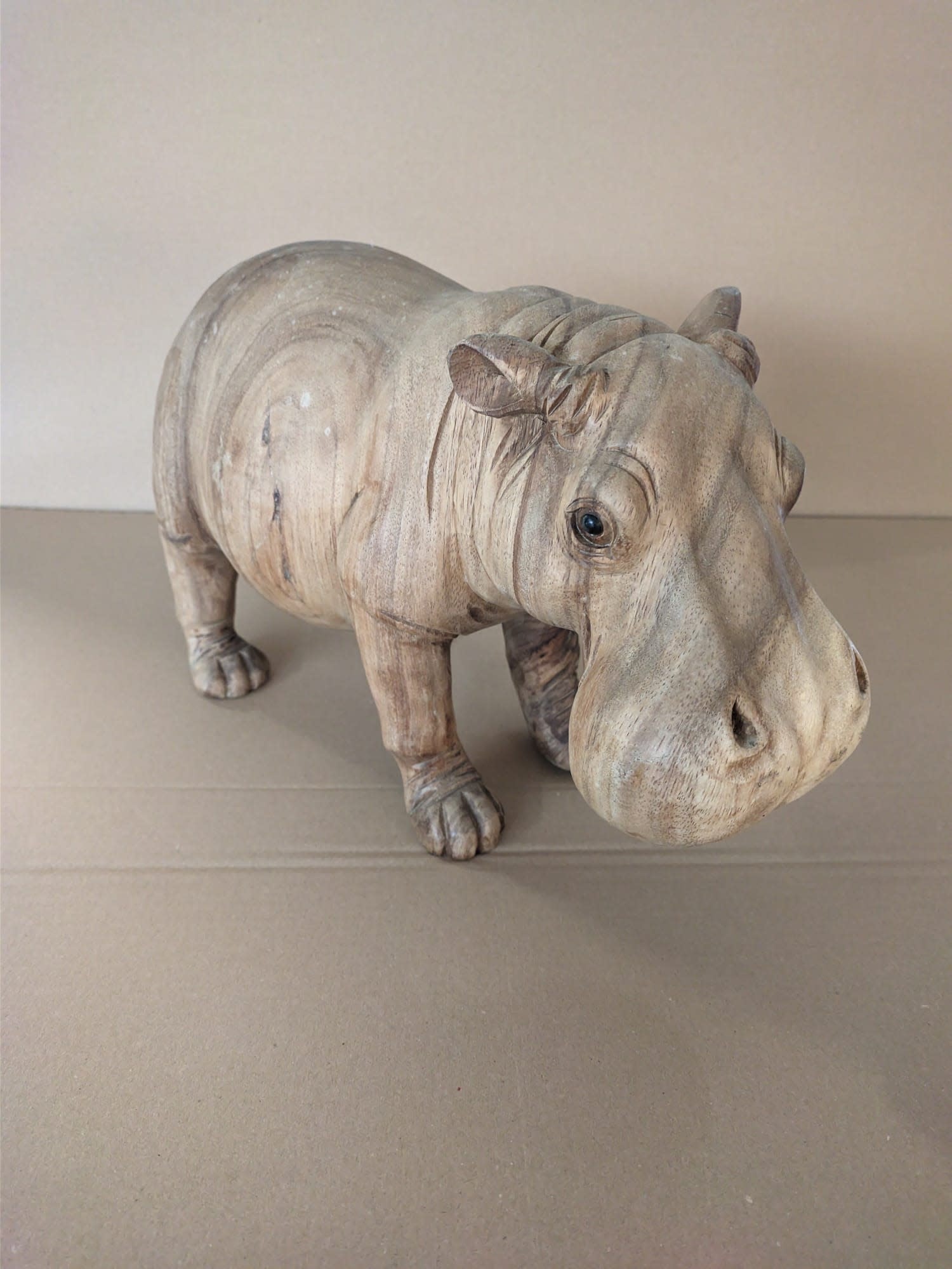 Prachtig stukje vakwerk, dit prachtige nijlpaard met gesloten bek, handmatig gemaakt van massief Suar hout.