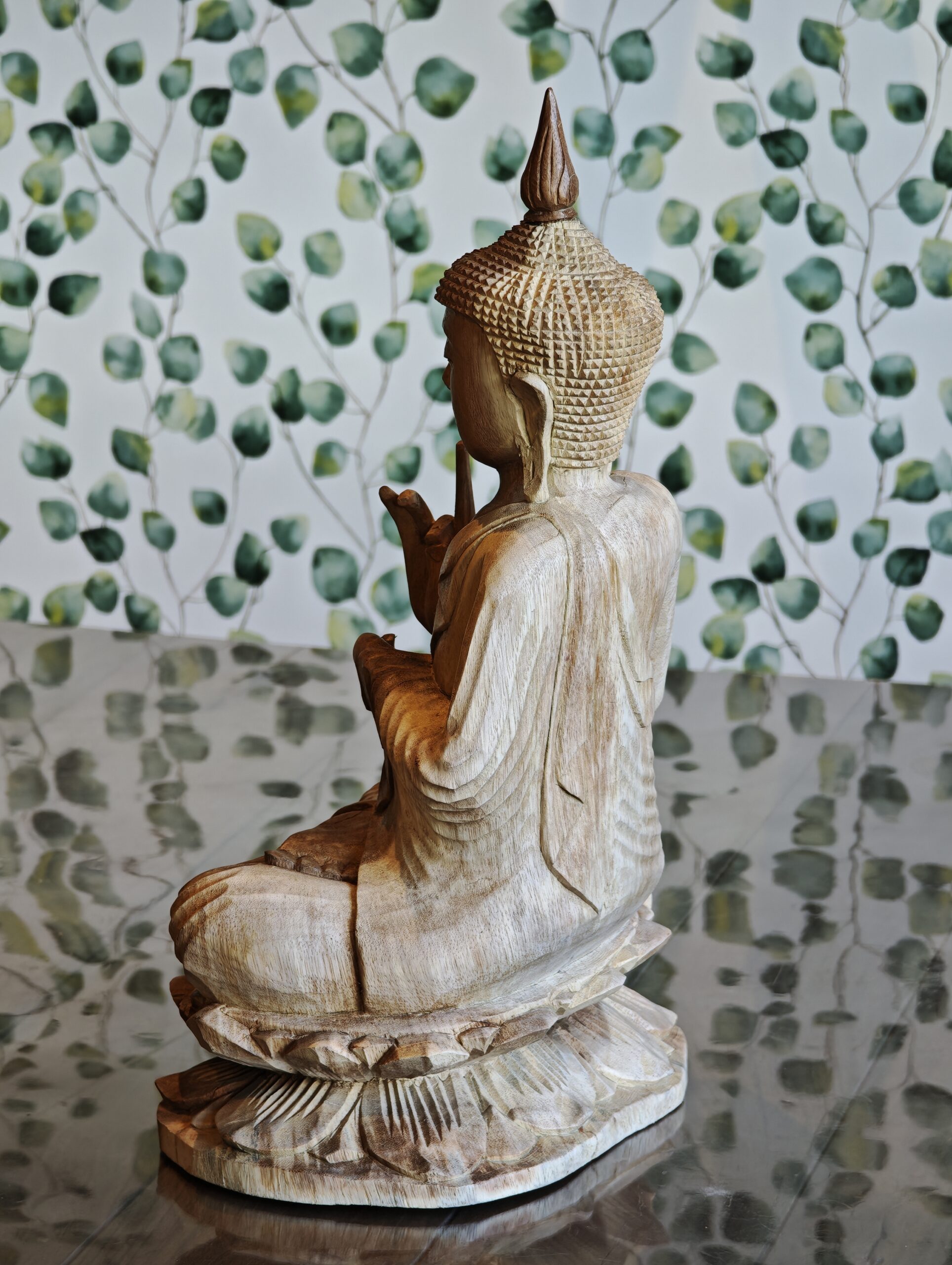 Dit unieke houten beeld van een Thaise Boeddha op lotus is 50 cm hoog en volledig met de hand vervaardigd door vakmensen. Omdat het om authentiek handwerk gaat, kunnen er kleine verschillen zijn in kleur en afwerking, wat jouw exemplaar tot een echt uniek item met een eigen karakter maakt.
