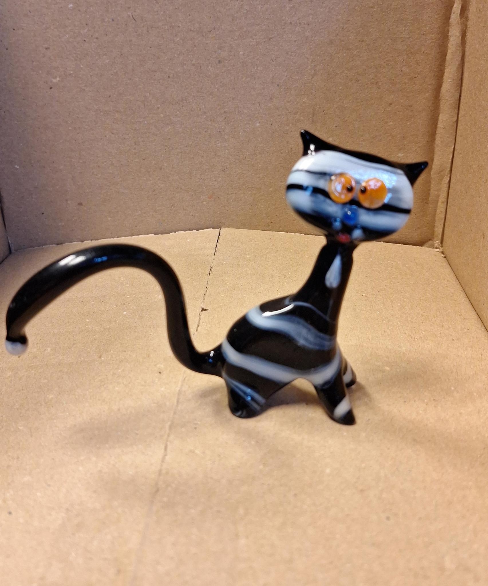 Dit glazen katje van Europese makelij is met de grootste zorg en zeer gedetailleerd gemaakt.