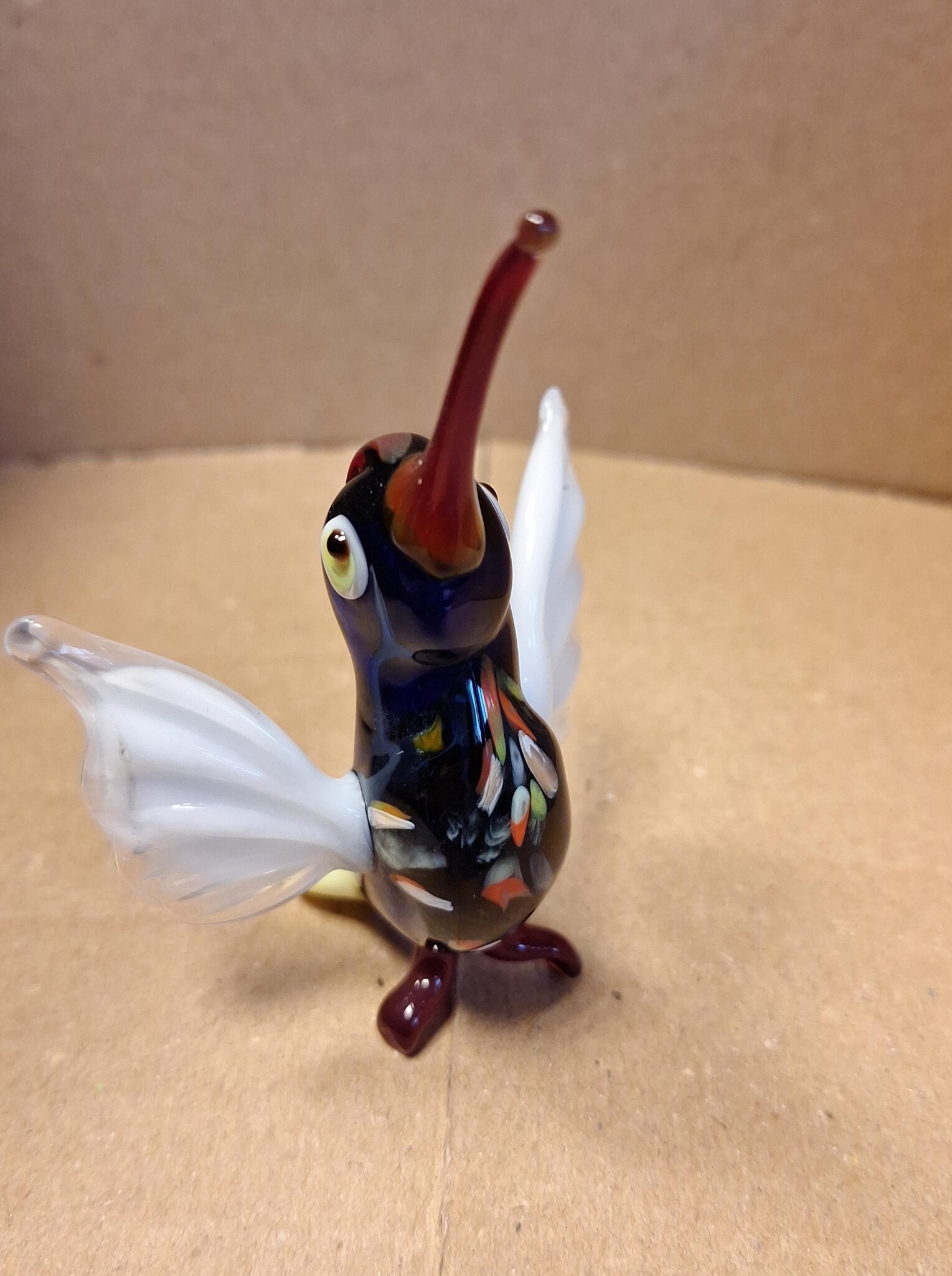 Deze glazen kolibrie van Europese makelij is met de grootste zorg en zeer gedetailleerd gemaakt.