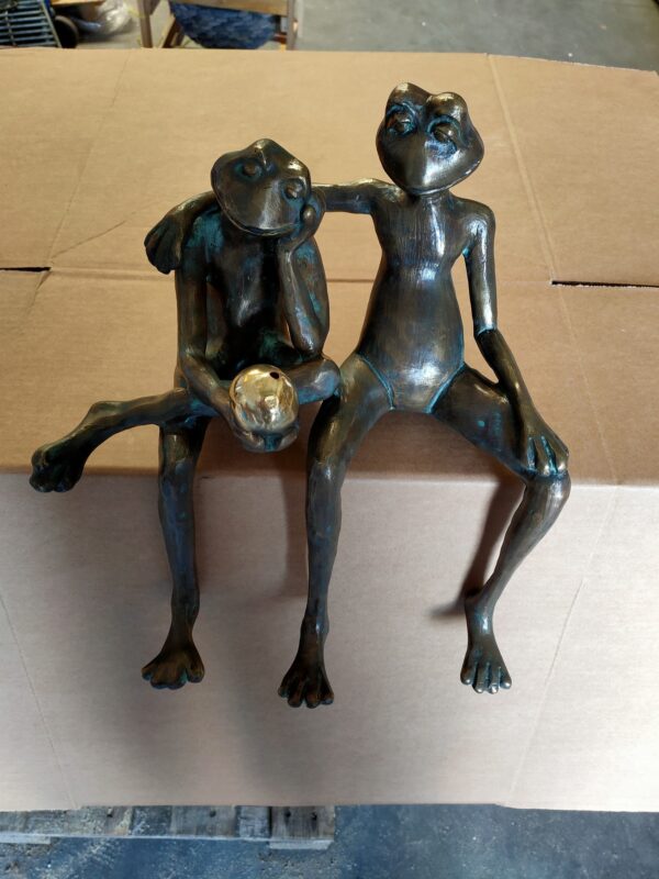 Mooi vormgegeven beeld van een vrolijke kikkers, gemaakt van 100% brons met een minimale kopergehalte van 75%.