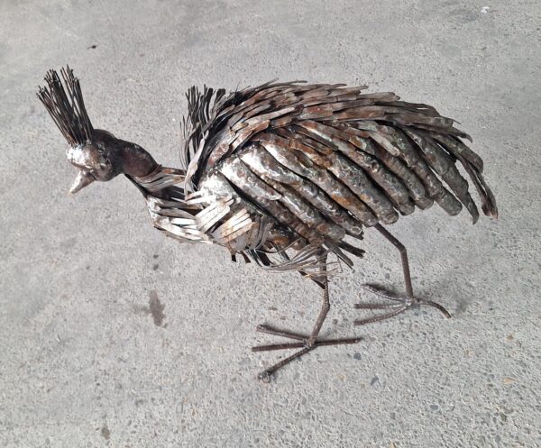 Het zijn echte kunstenaars, die dit beeld van een levensgrote kroon kraanvogel gemaakt hebben. Als je dit beeld lang bekijkt ga je beseffen hoeveel werk het is om een kunstwerk als dit te maken. Kloppen, buigen, lassen, meten, het is echt een gigantisch werk. Wilt u iets unieks in uw tuin of bij uw bedrijf, dan bent u er zeker van dat dit model zeer zeldzaam is en niet zomaar te koop is. !! Dit model is er in 3 standen van de vogel.