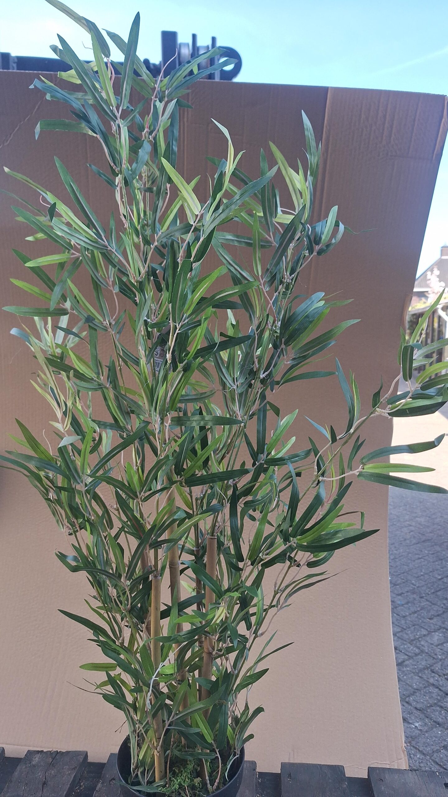 Dit natuurgetrouwe model bamboe met hoge stelen en vele lange bladeren is gemaakt van de fijnste gerecyclede kunststof soorten, en staat goed op zichzelf door de pot waarin de plant staat. Deze 90cm grote bamboe vult lege plaatsen heel snel door de hoge stelen en vele bladeren. Gecombineerd met andere zijdeplanten, samen in 1 grote pot kunt u een mooi planten arrangement maken, waar u geen omkijken meer naar heeft.