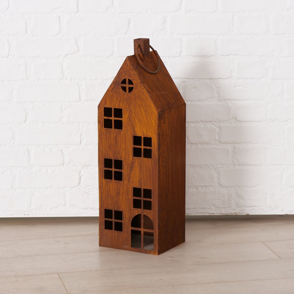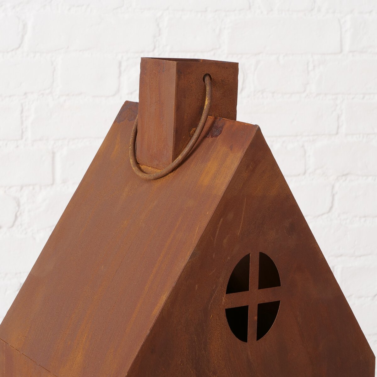 De lantaarns zijn uitgevoerd in een prachtige roestkleur, wat zorgt voor een robuuste, landelijke en tijdloze uitstraling. Deze warme tint blendt prachtig met het groen in uw tuin of staat stoer op een verhard terras. Wanneer u een grote kaars, windlicht of (LED)verlichting in de behuizing plaatst, schijnt het licht sfeervol door de vierkante vensters, het ronde zolderraampje en de boogdeur aan de onderzijde naar buiten. Dit zorgt in de avonduren voor een gezellig en uitnodigend schouwspel.