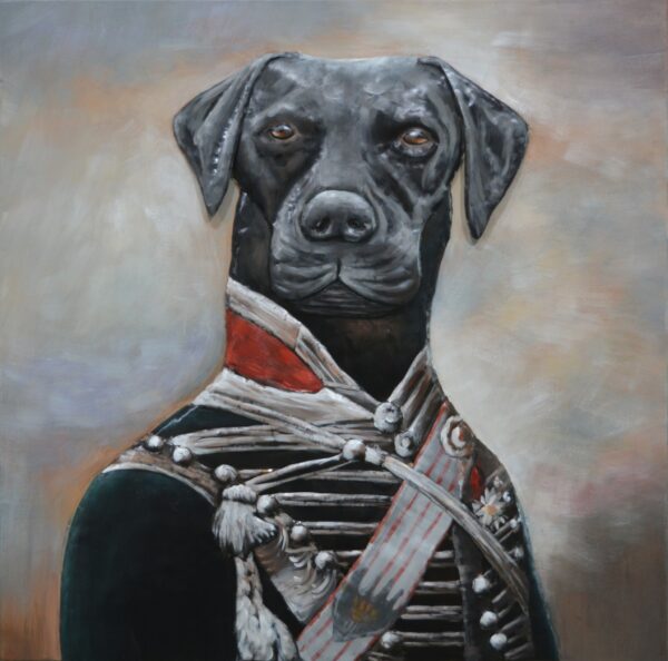 Geheel met de hand gemaakte 3d schilderij van metaal, met de afbeelding van een deense dog; een zeer arbeidsintensief stuk muurdecoratie !