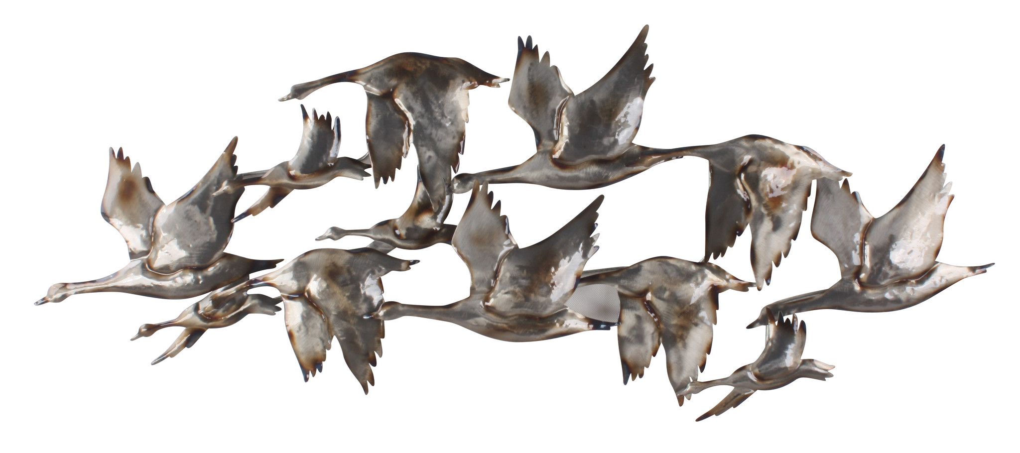Deze 3D metalen muurdecoratie kleedt elk modern interieur of werkplek prachtig aan. Dit model met ganzen zal een sfeervolle en tijdloze stuk wanddecoratie en een ware blikvanger zijn. Kan evt ook verticaal opgehangen worden.
