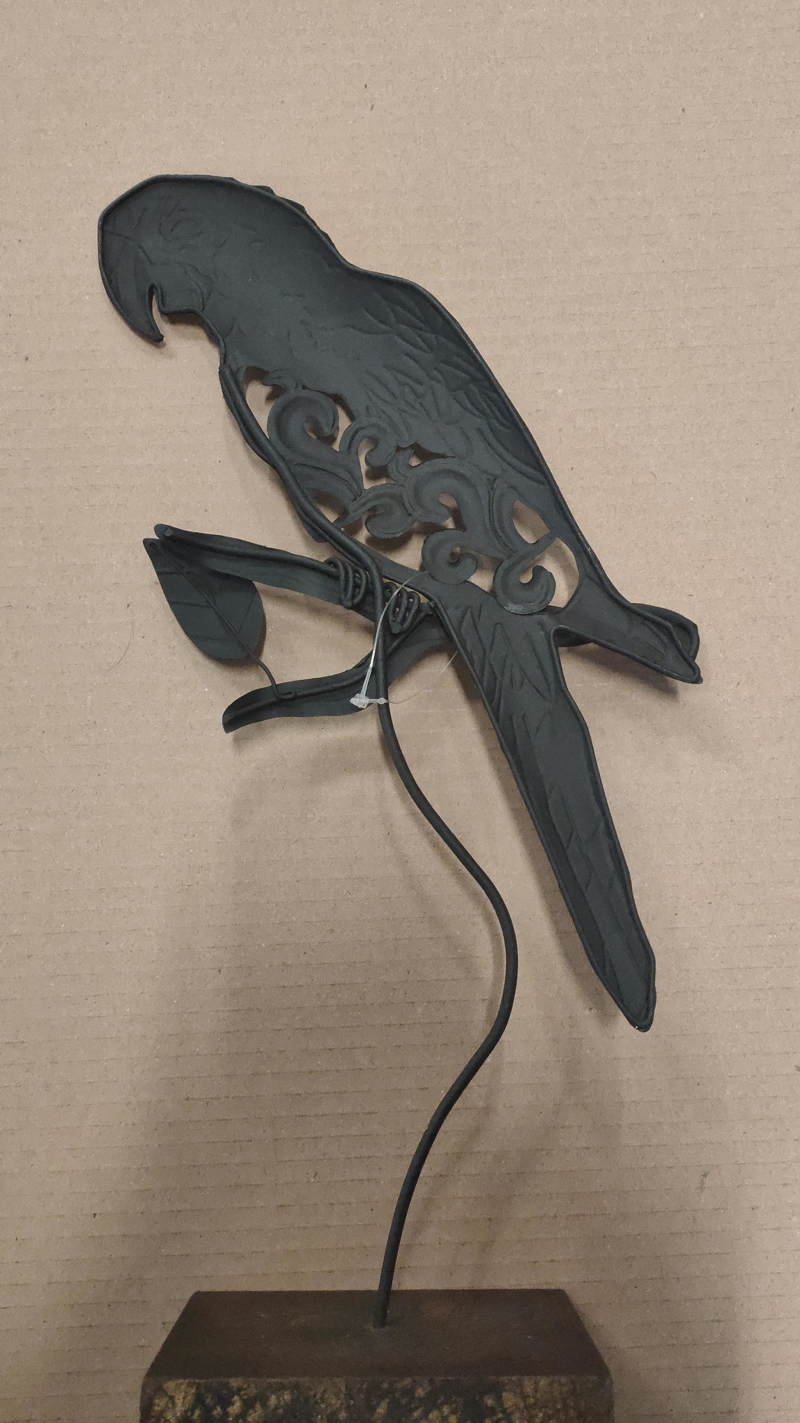 Deze blikken ara is helemaal met de hand geknipt, uitgeslagen, gesoldeerd en daarna diverse kleuren gegeven, en is parelmoer gebruikt voor een prachtig kleuren effect. Zie hier het resultaat, een mooi decoratie object met warme kleuren. Aangezien dit handwerk is zal elk exemplaar anders zijn qua kleur, de foto is slechts een voorbeeld.