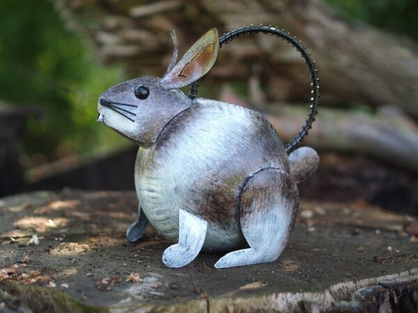 Schitterend afgewerkste metalen figuur van een konijn met een gieter functie. Een sierraad in huis of tuin en mooi om kado te doen. Helemaal met de hand gemaakt en geverfd.